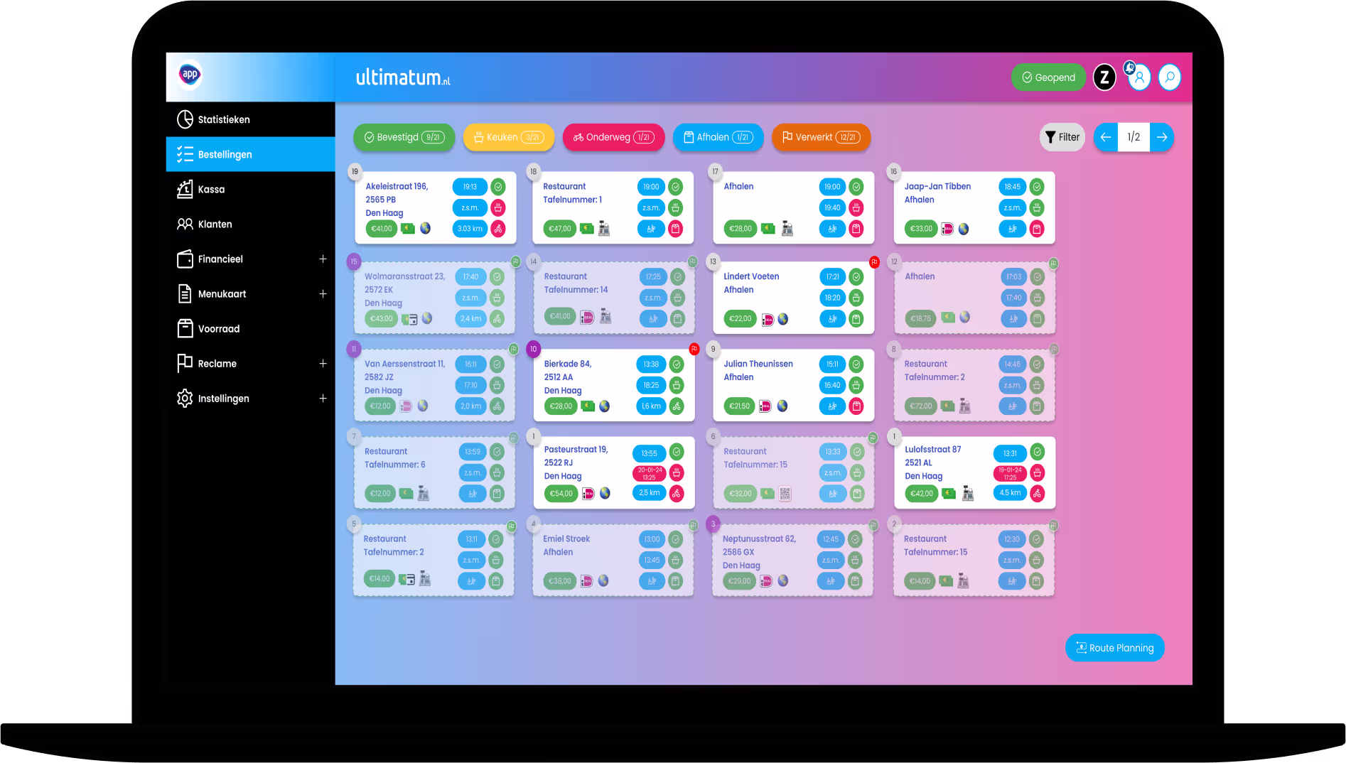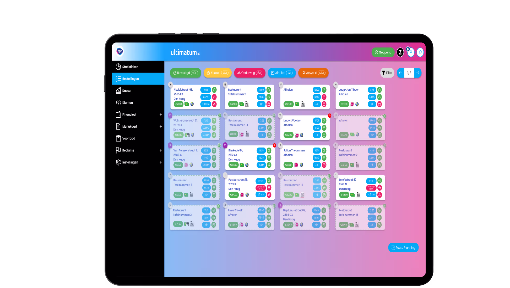 Je hebt alles onder controle. Of het nu gaat om afhaal- of bezorgbestellingen, je ziet in één oogopslag wat de status is. En met real-time updates mis je nooit een beat.