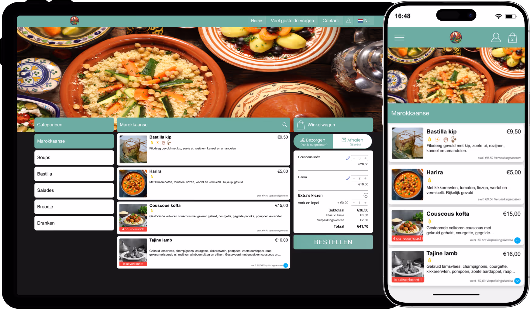 Bovendien optimaliseert onze app uw bestel- en bedieningsprocessen, waardoor u meer tijd kunt besteden aan het creëren van memorabele eetervaringen voor uw gasten. Ultimatum App stelt u in staat om uw Marokkaans restaurant te onderscheiden met een efficiënt beheer, uitzonderlijke service en een onvergetelijke culinaire reis. Kies voor Ultimatum App en laat uw Marokkaans restaurant schitteren met de perfecte mix van traditie en innovatie.