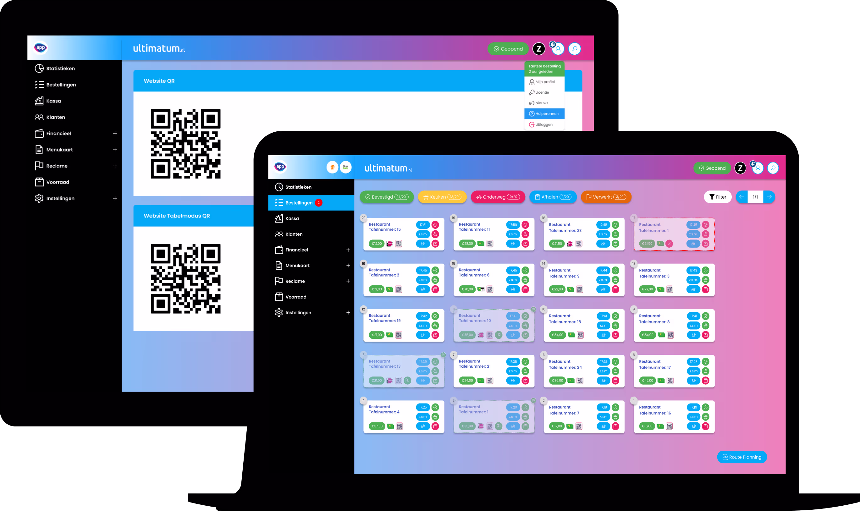 Ons QR-Code Bestel systeem is perfect geïntegreerd met ons reeds vlekkeloze Ultimatum Bestelsysteem. Hierdoor verschijnen bestellingen direct in jouw overzicht, zonder enige complexiteit en met een vlotte afhandeling van processen.