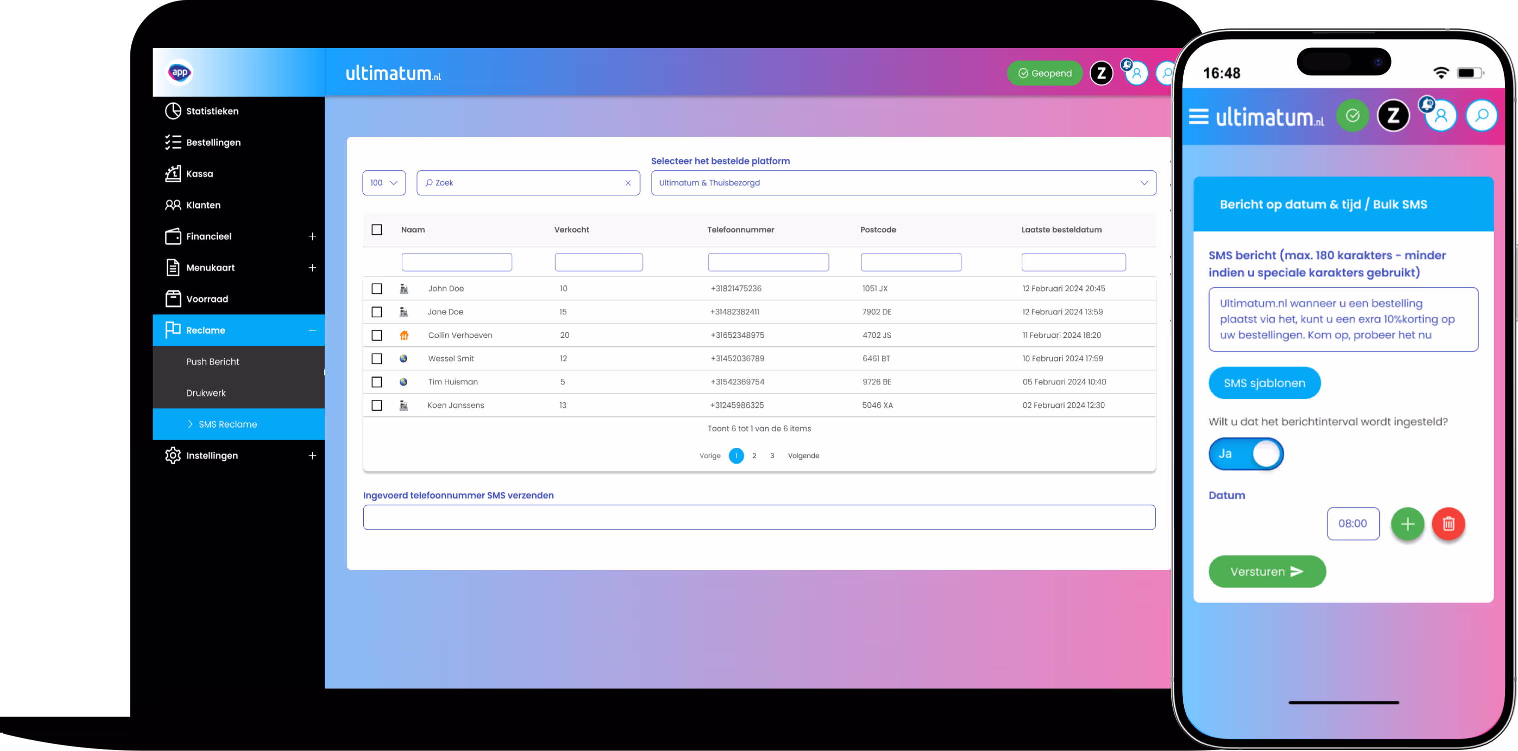 Het mooie is dat deze SMS functie volledig is geïntegreerd in ons systeem. Dat betekent dat je geen aparte tools nodig hebt; alles gebeurt vanuit één centrale plek.